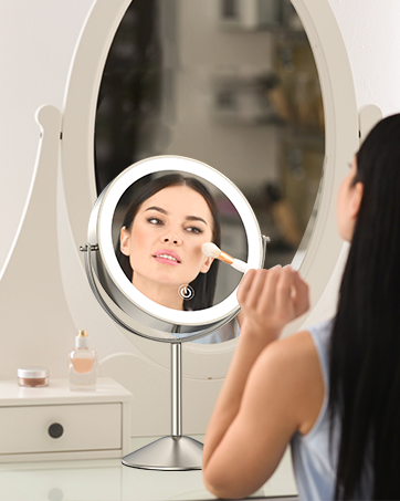 【Double-Sided 1X/10X Magnifying】- With 1X/10X magnification, this magnifying mirror with lights gives HD mirror effect with no distortion. You can rotate the 1X mirror to see your entire face, or 10X specific parts. Using a magnifying glass, applying mascara, wearing contact lenses, eyebrow tweezing, shaving and facial care will become easier. The lighted makeup mirror with magnification can flexibly meet your flawless makeup and precise grooming needs.