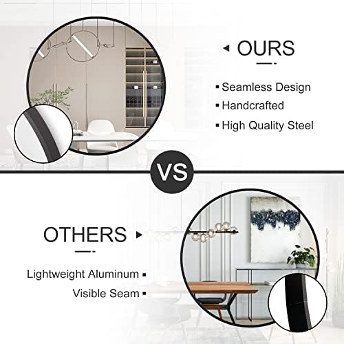 【Metal Framed Round Mirror】 All processes of our mirrors are handmade with more attention to quality and detail. The high quality steel frame takes a very beautiful “seamless design”, which is superior to the obvious seams of aluminum frames across the board.