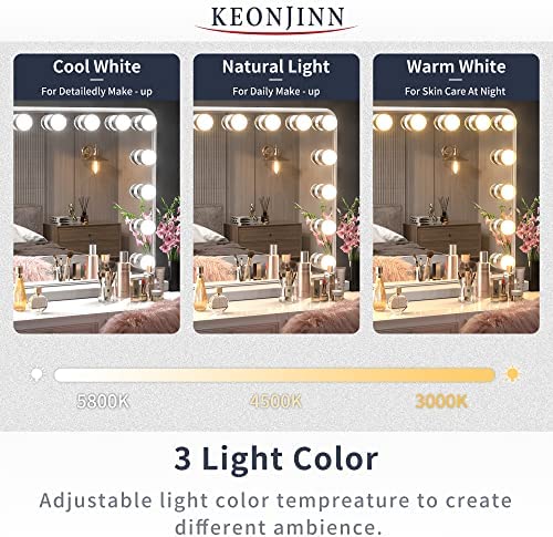 [USB Charging Port] Use Keonjinn vanity mirror with lights to enjoy makeup time with ease. A USB charging port(5V, 1.5A) on the right side of the Hollywood vanity mirror provides convenient charging for your phone/pad.