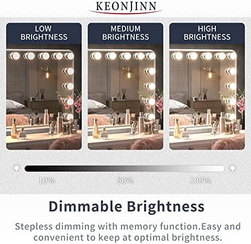 [3 Color Lights & Memory Function] The vanity mirror with lights for bedroom is surrounded by 15 LED bulbs and can be adjusted in 3000K-5800K, 3 modes (cool, natural, and warm). Brightness can be adjusted to meet your different makeup lighting requirements. With memory function to remember your setting preferences.