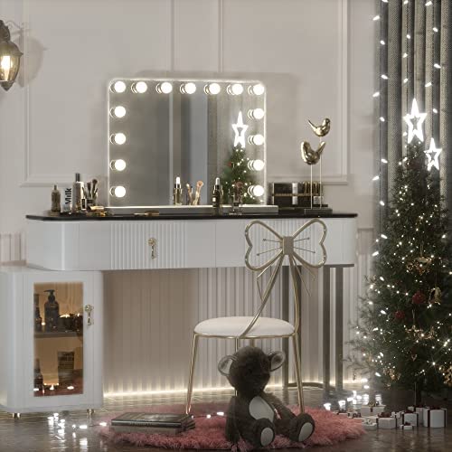 [Plug-in Replaceable Blubs] The hollywood vanity mirror bulbs are replaceable. If the bulb fails, you can simply replace it with 2 extra bonus bulbs. Our vanity mirror with lights has a longer lifespan than other non-replaceable lighted makeup mirrors.