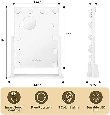 【 Ajustable Brightness & 3 Colors Lighting Modes 】- The LED brightness of this hollywood lighted makeup mirror can be changed as you need. This LED makeup mirror provides 3 colors lighting modes so that you can also adjust different brightness to meet your different makeup needs, no matter it is early morning or late night.