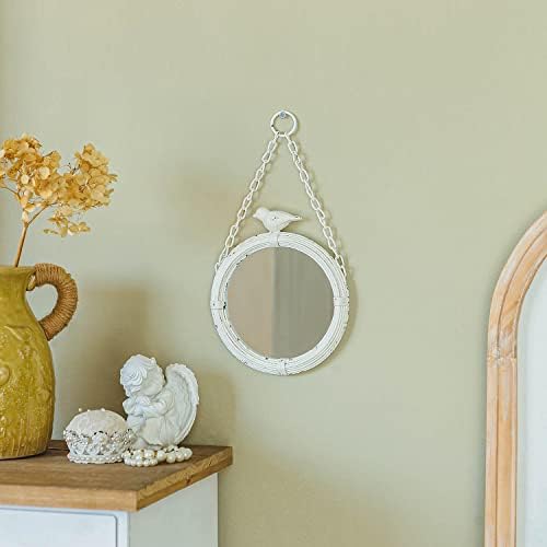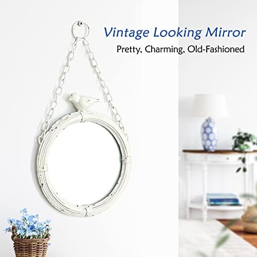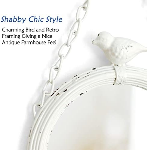 SHABBY CHIC COTTAGE STYLE – Metal framed antique-look mirror with chain for hanging, solid and durable. Dainty bird on the top finished in a charming distressed white for an antiqued effect, adds a rustic farmhouse shabby chic appeal