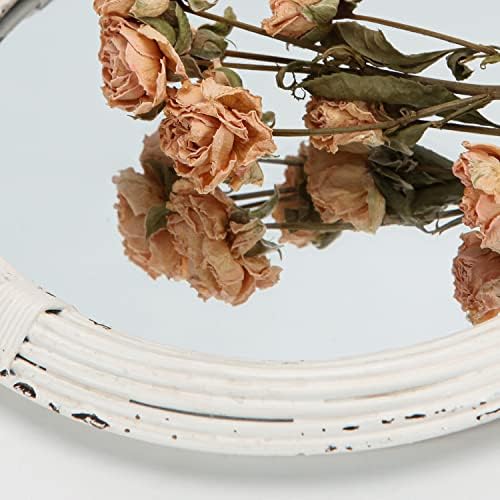 EXCEPTIONAL QUALITY: This country wall mirror is constructed of strong iron with a lightly worn white painted finish and a round glass mirror with a clear reflection. Mirror provides a distortion-free reflection, perfect for housewarming, Christmas, and holiday gifts, birthdays, Valentine’s Day, and Mother’s Day