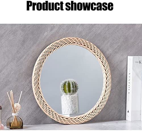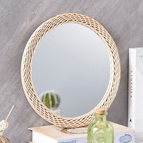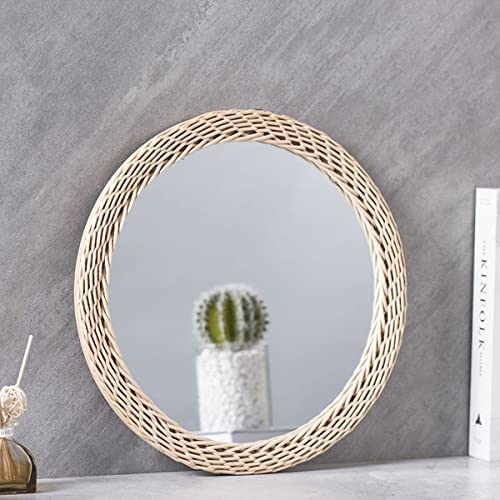 YUNSHID 13.8Inch Boho Rattan Wall Mirror, Boho Round Hanging Wall Mirror Decorative Rattan Circle Wall Mounted Mirror for Farmhouse, Living Room, Bedroom, Bathroom