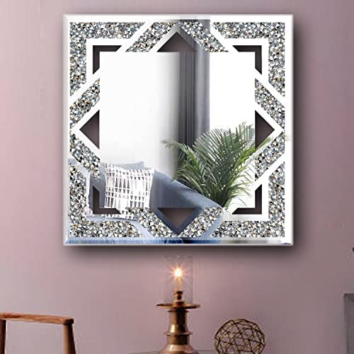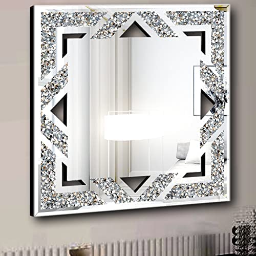 ZOLAPI Square Crushed Diamond Wall Mirror,Luxurious Innovative Glass Mirror,Decorative Mirror for Bathroom/Living Room/Bedroom/Hallway.(20”x20”)
