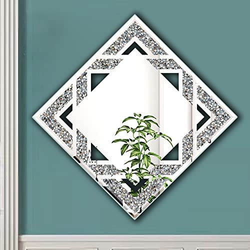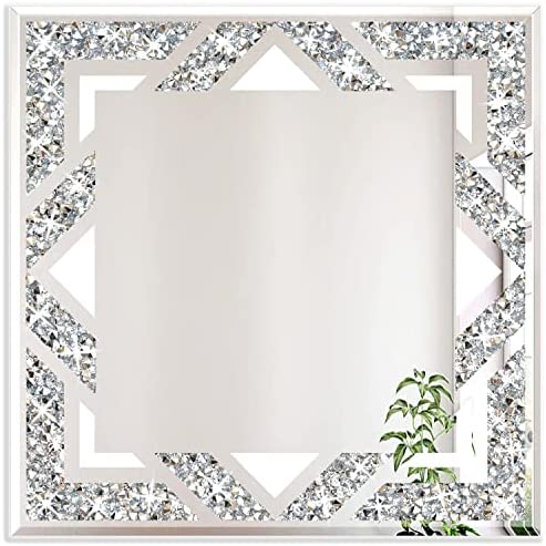 Color:Silver About our products ZOLAPI square crushed diamond wall mirror. Its size is 20”x20”,1 PCS mirror is packed in a cardboard box with polystyrene foam.There are hanging hardware on the back including hanging screws. SATISFACTION GUARANTEE we pride ourselves with a 100% Customer Satisfaction Guarantee. We are confident in our products and stand behind them 100%. Just reach to us with any questions or concerns and we will be happy to help within 24 hours!